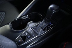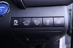 シフトレバー後方にハイブリッド走行モード選択、電動パーキングブレーキ等のスイッチが配置されています。
