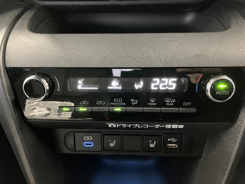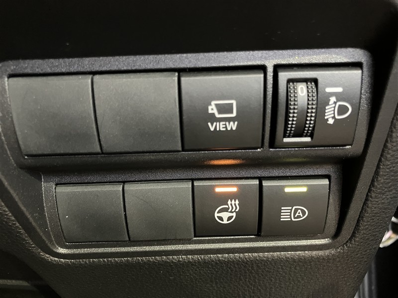 パノラミックビューモニターの視点切り替え、ハンドルヒーター、オートマチックハイビーム等のスイッチが配置されてます。
