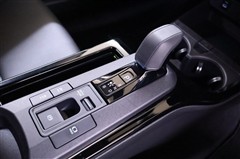 エレクトロシフトマチックの奥にハイブリッド走行選択スイッチ、電動パーキングブレーキ、トラクションコントロール(横滑り防止機能)等の運転に重要なスイッチが集中配備されています。