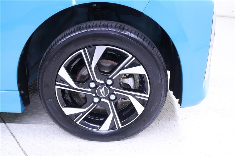 純正のアルミホイール装着。足元もお洒落ですね。タイヤサイズは155/65R14