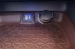 オーディオ機器やスマートフォンを直接カーオーディオに接続できるUSB端子と12V/120Wのアクセサリーソケットが配置されています。