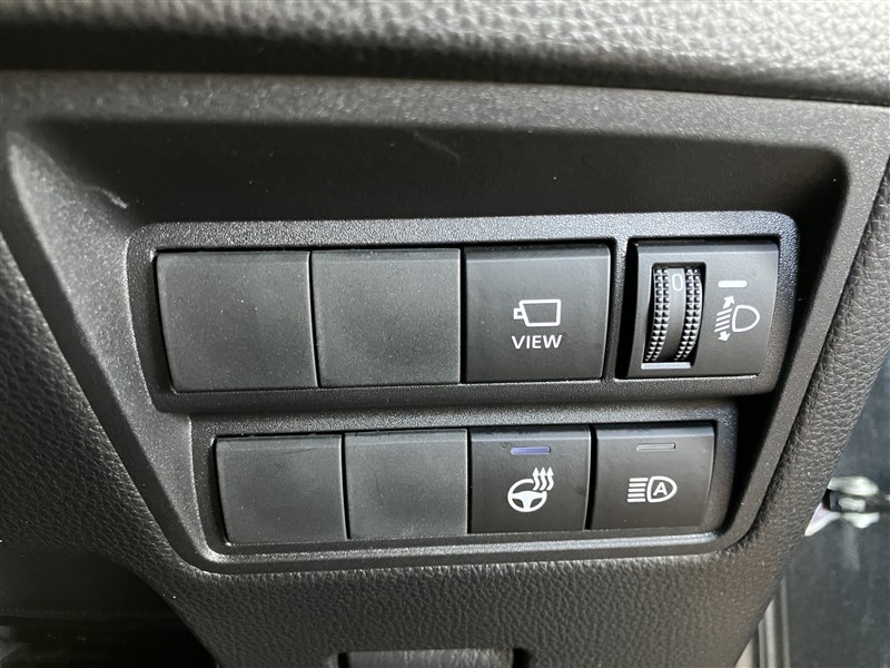 車載カメラの視点切替スイッチ、ハンドルヒーター、オートマチックハイビーム等のスイッチが配置されています。