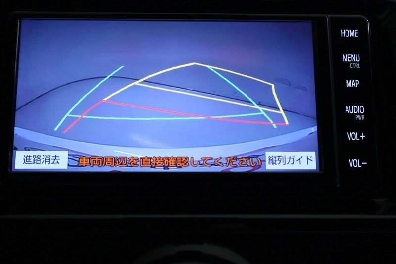 ハンドル操作に連動して、ガイドラインが予想進行先を表示するバックガイドモニター付きです。夜間でも後方の視界が確保出来るので、より安定した運転が行えます。補助装置になりますので、目視での確認も大切です。
