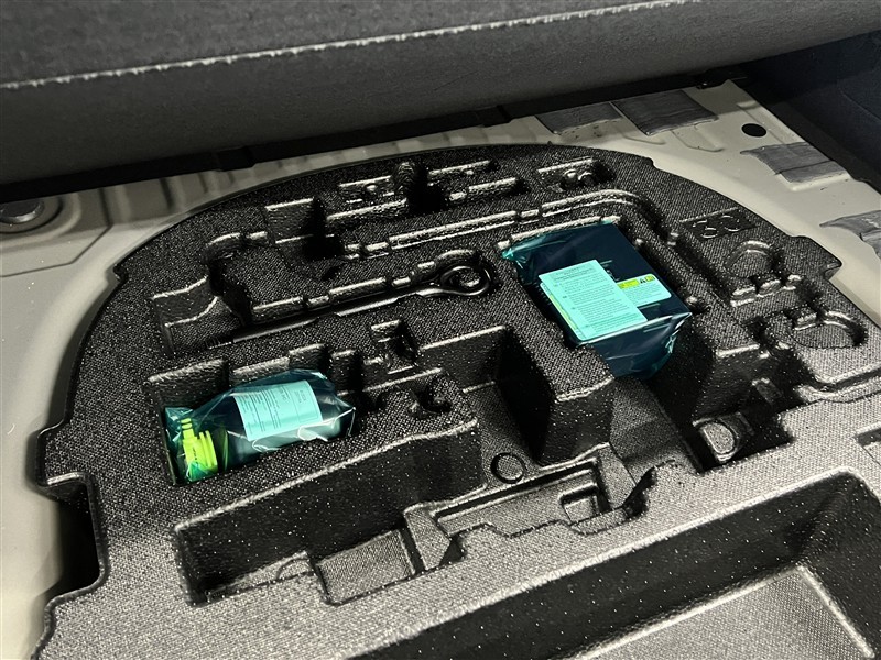 【パンク修理キット】スペアタイヤの代わりにパンク修理キットが備え付けられております