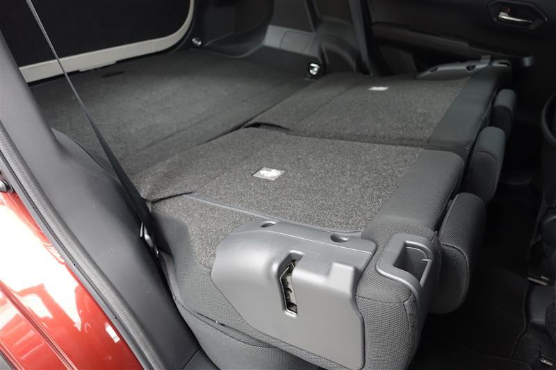 セカンドシートを倒した状態です。セカンドシートは独立可倒、荷物に合わせてラゲッジスペースをアレンジできます。