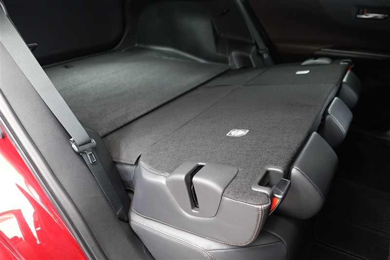 セカンドシートを倒した状態です。セカンドシートは独立可倒、荷物に合わせてラゲッジスペースをアレンジできます。