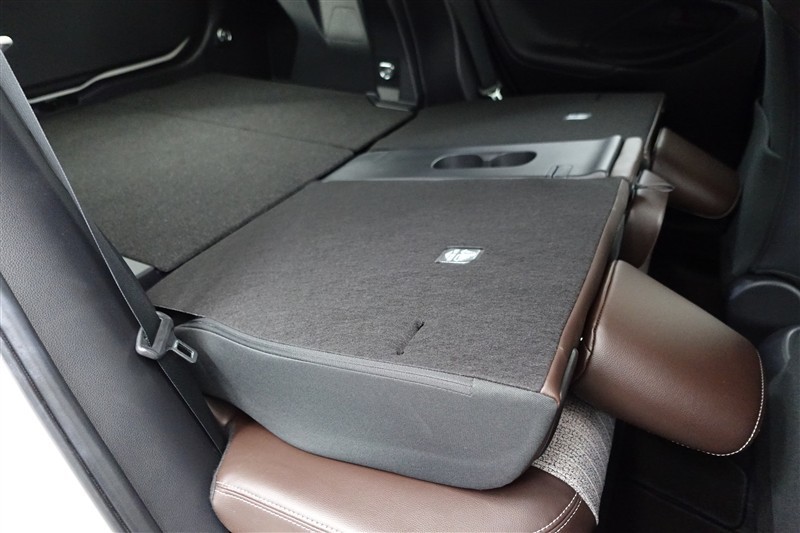 セカンドシートを倒した状態です。セカンドシートは独立可倒、荷物に合わせてラゲッジスペースをアレンジできます。