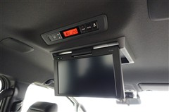 天井吊り下げ式の後席モニターも装着されています。これで後ろの方々も渋滞時には退屈しないですみますね。使用しないときには折りたためるのもうれしいポイントです♪