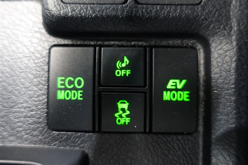 【ecoモード・EVモード切替スイッチ】燃費を重視した【ecoモード】や夜間や早朝・住宅街などでご使用いただくことが多い【EVモード】に切り替えるときには運転席横のスイッチを使用します。