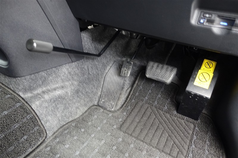 左足アクセルペダル、手動サイドブレーキガ付いています!