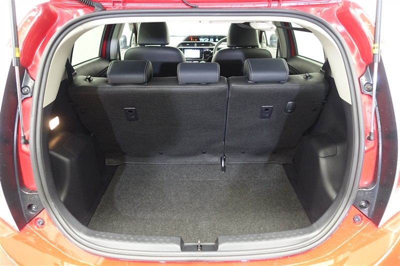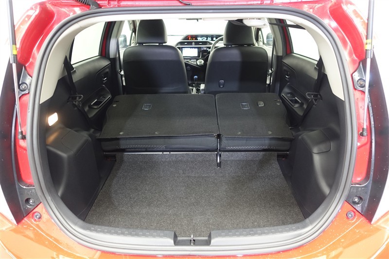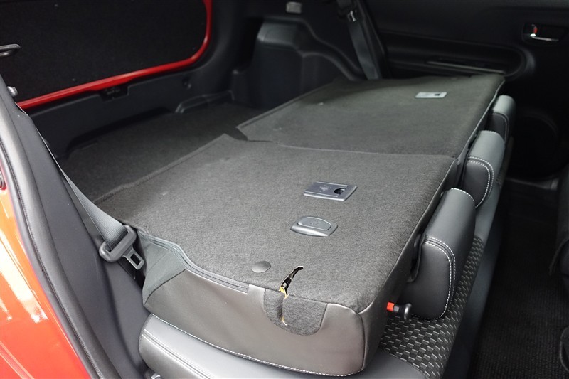 セカンドシートを倒した状態です。セカンドシートは独立可倒、荷物に合わせてラゲッジスペースをアレンジできます。
