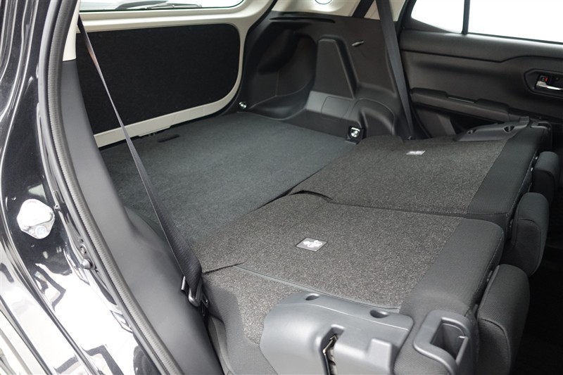 セカンドシートを倒した状態です。セカンドシートは独立可倒、荷物に合わせてラゲッジスペースをアレンジできます。