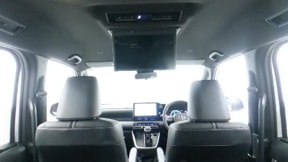 ★天井吊り下げ式の後席モニターも装着されています。これで後ろの方々も渋滞時には退屈しないですみますね。使用しないときには折りたためるのもうれしいポイントです♪