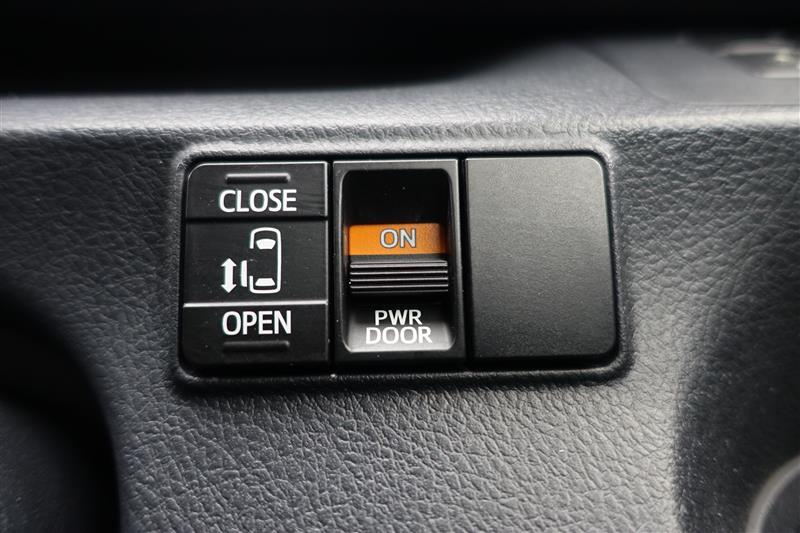 助手席側スライドドアは左側のスイッチを長押しすることで開閉できます!タクシーのようですね。このスイッチのほかにも「リモコンキーからの操作」と「ドアノブの操作」によって電動スライドします