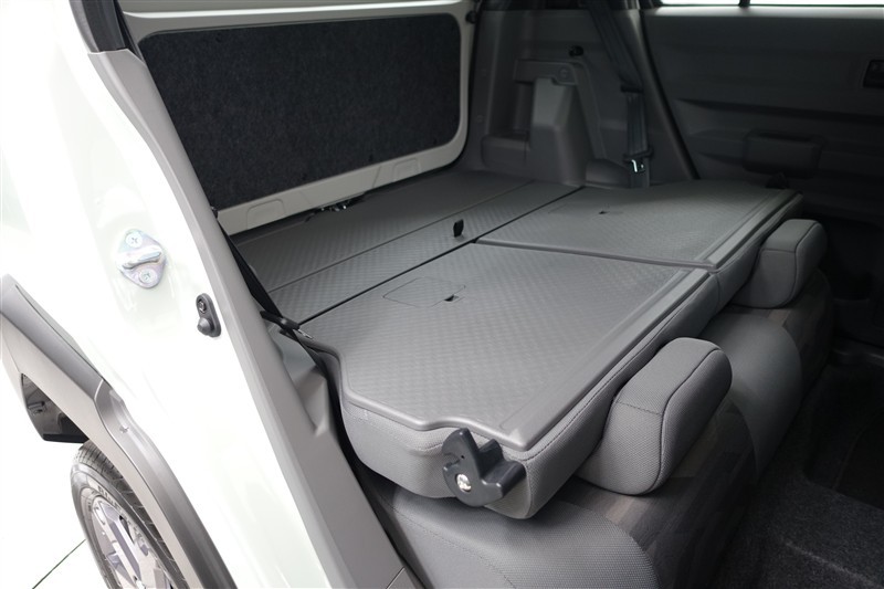 セカンドシートを倒した状態です。セカンドシートは独立可倒、荷物に合わせてラゲッジスペースをアレンジできます。