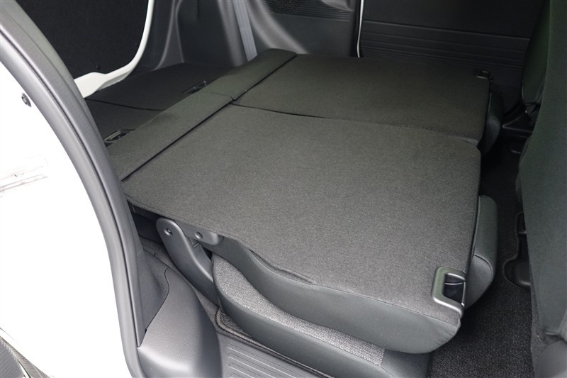 セカンドシートを倒した状態です。セカンドシートは独立可倒、荷物に合わせてラゲッジスペースをアレンジできます。