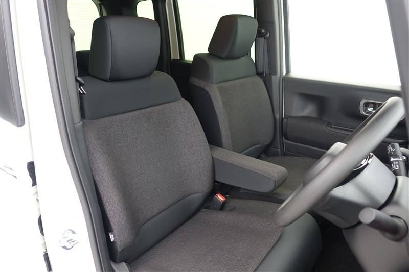 フロントシートはゆったりとしていて開放感があるベンチシートです。車内の移動も楽々です!狭い場所や駐車場で片側をギリギリに停めた際には便利ですよ!