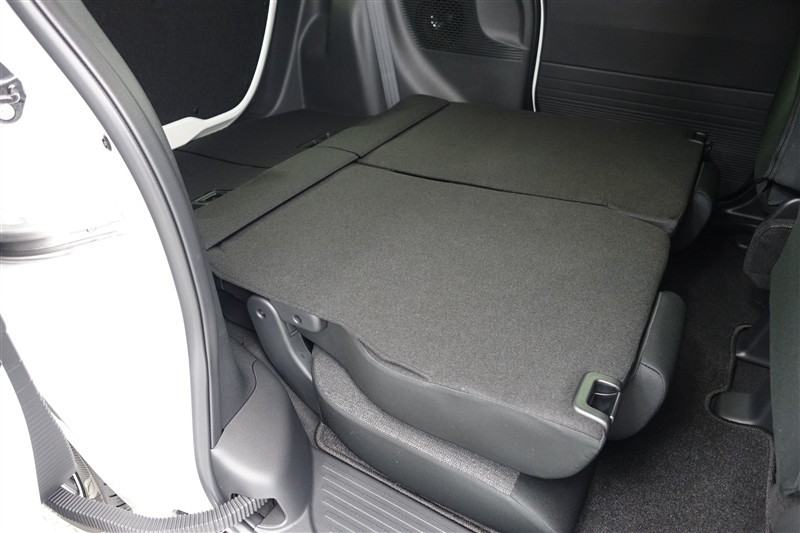 セカンドシートを倒した状態です。セカンドシートは独立可倒、荷物に合わせてラゲッジスペースをアレンジできます。
