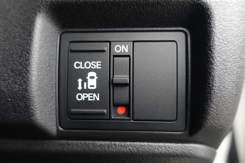 助手席側スライドドアは左側のスイッチを長押しすることで開閉できます!タクシーのようですね。このスイッチのほかにも「リモコンキーからの操作」と「ドアノブの操作」によって電動スライドします。