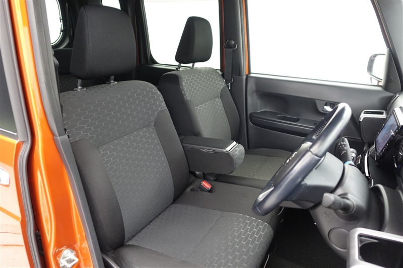 フロントシートはゆったりとしていて開放感があるベンチシートです。車内の移動も楽々です!狭い場所や駐車場で片側をギリギリに停めた際には便利ですよ!