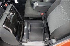 助手席座面下にも収納スペースがあります。濡れ物や大切なものをしまうことができます。