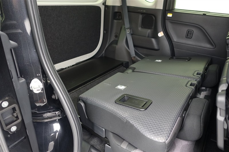 セカンドシートを倒した状態です。セカンドシートは独立可倒、荷物に合わせてラゲッジスペースをアレンジできます。