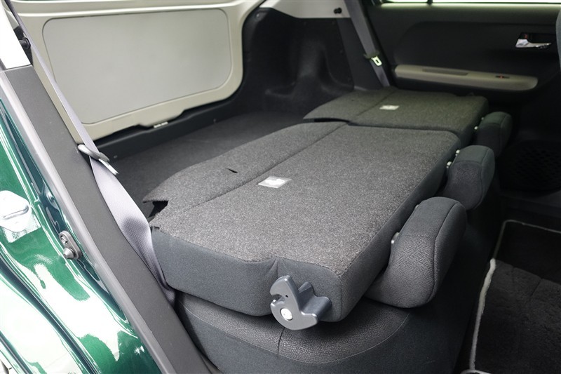 セカンドシートを倒した状態です。セカンドシートは独立可倒、荷物に合わせてラゲッジスペースをアレンジできます。