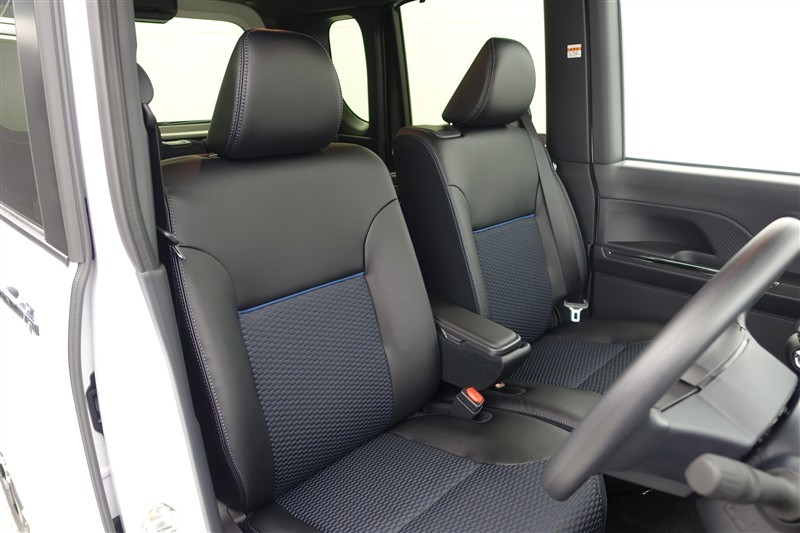 フロントシートはゆったりとしていて開放感があるベンチシートです。車内の移動も楽々です!狭い場所や駐車場で片側をギリギリに停めた際には便利ですよ!