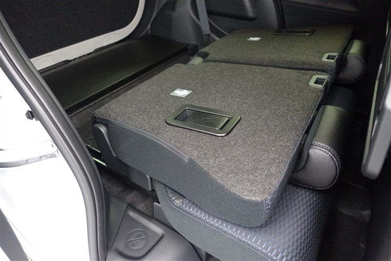 セカンドシートを倒した状態です。セカンドシートは独立可倒、荷物に合わせてラゲッジスペースをアレンジできます。
