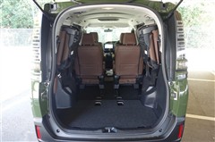 3列目シートは跳ね上げ式で折りたたみが可能です。たためば荷物もしっかり積める!キャンプ用品なども、気兼ねなく積めそうです。旅行にも強い味方ですね。