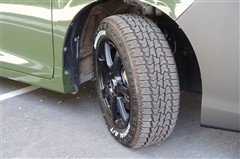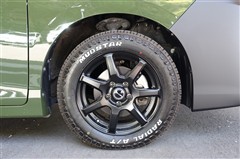 16インチ・7本スポーク(DUNLOP PRD SP7)にマッドスターA/T(205/60R16)を装着。ホワイトレターとマットホイールを組み合わせ、足元に存在感と個性をプラスしています。
