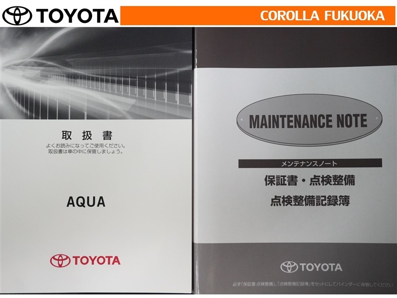 取扱説明書・メンテナンスノートです。車の情報が凝縮されています。車の整備記録が記載されている大事な物ですよ。