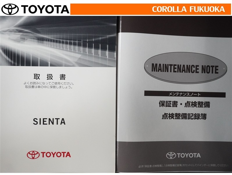 取扱説明書・メンテナンスノートです。車の情報が凝縮されています。車の整備記録が記載されている大事な物ですよ。