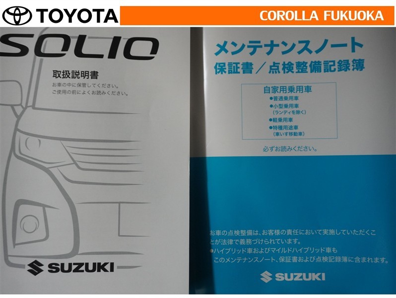 取扱説明書・メンテナンスノートです。車の情報が凝縮されています。車の整備記録が記載されている大事な物ですよ。
