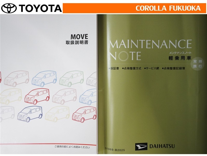 取扱説明書・メンテナンスノートです。車の情報が凝縮されています。車の整備記録が記載されている大事な物ですよ。