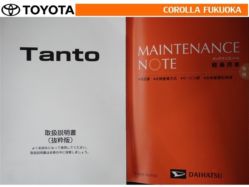 取扱説明書・メンテナンスノートです。車の情報が凝縮されています。車の整備記録が記載されている大事な物ですよ。