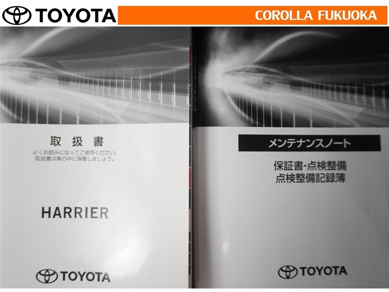 取扱説明書・メンテナンスノートです。車の情報が凝縮されています。車の整備記録が記載されている大事な物ですよ。