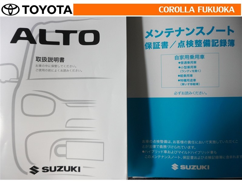 取扱説明書・メンテナンスノートです。車の情報が凝縮されています。車の整備記録が記載されている大事な物ですよ。