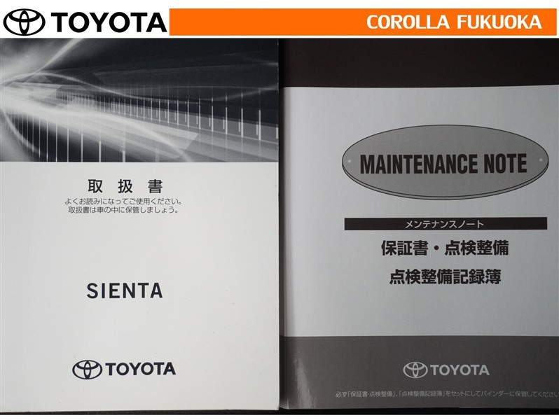 取扱説明書・メンテナンスノートです。車の情報が凝縮されています。車の整備記録が記載されている大事な物ですよ。