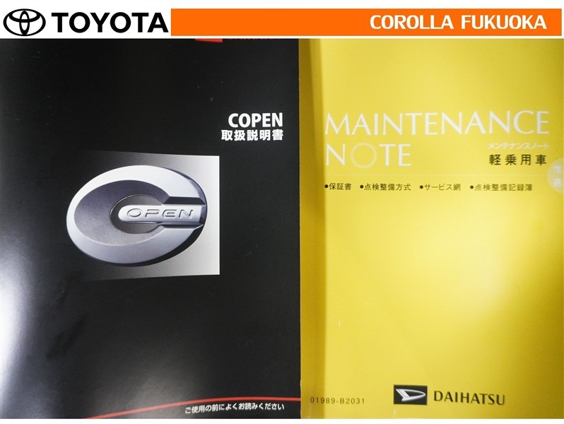 取扱説明書・メンテナンスノートです。車の情報が凝縮されています。車の整備記録が記載されている大事な物ですよ。