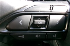 ステアリングスイッチ付き。前方から目を離すことなく、オーディオの音量調整や情報操作系を操作できます。
