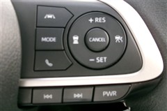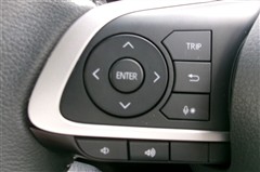 ステアリングスイッチ付き。前方から目を離すことなく、オーディオの選局や運転支援系の操作ができます。