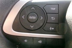 ステアリングスイッチ付き。前方から目を離すことなく、オーディオの音量調整や情報操作系を操作できます。