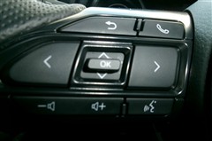 ステアリングスイッチ付き。前方から目を離すことなく、オーディオの音量調整や情報操作系を操作できます。