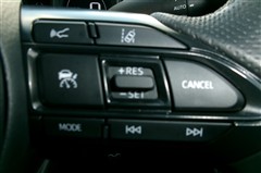 ステアリングスイッチ付き。前方から目を離すことなく、オーディオの選局や運転支援系の操作ができます。