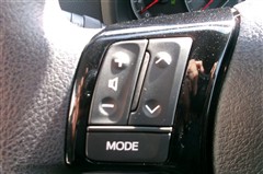 ステアリングスイッチ付き。前方から目を離すことなく、主にオーディオ系の操作ができます。