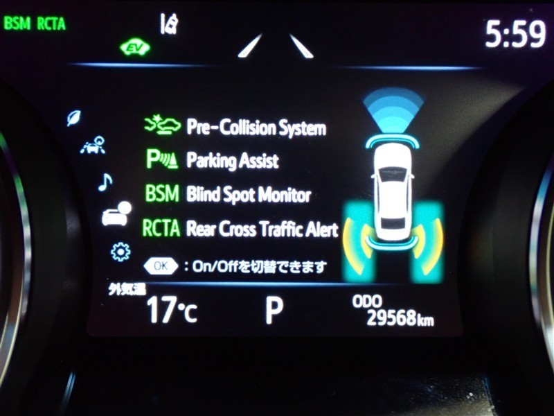 車線変更時などに、ドアミラーでは確認しにくい後側方エリア(ブラインドスポット)に存在する車両をレーダーで検知。警告サインをドアミラー等に表示することで、運転者に注意喚起する機能。