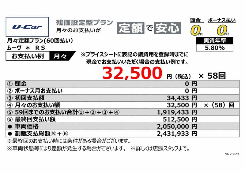 頭金0円!ボーナス払い0円! 月々32,500円