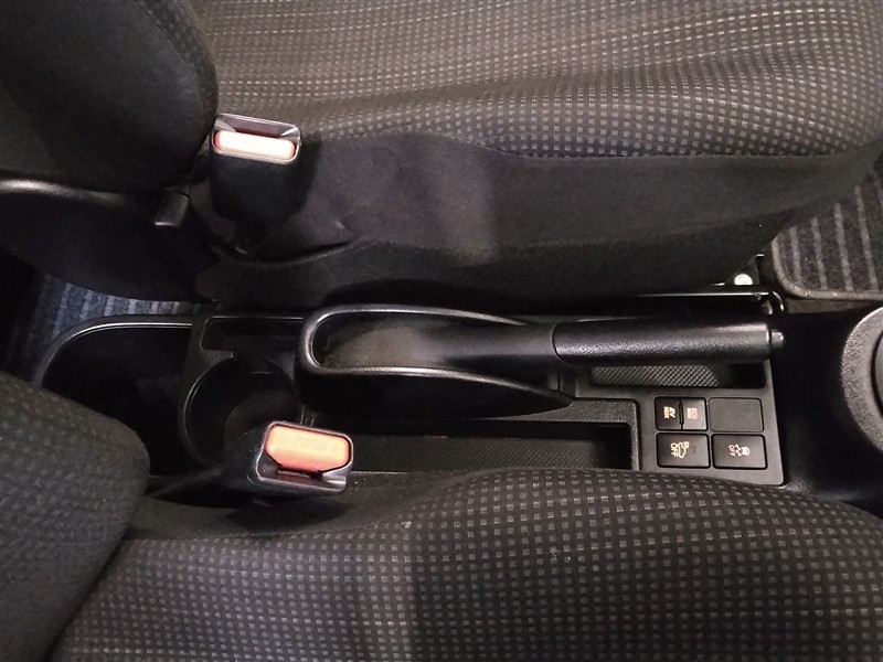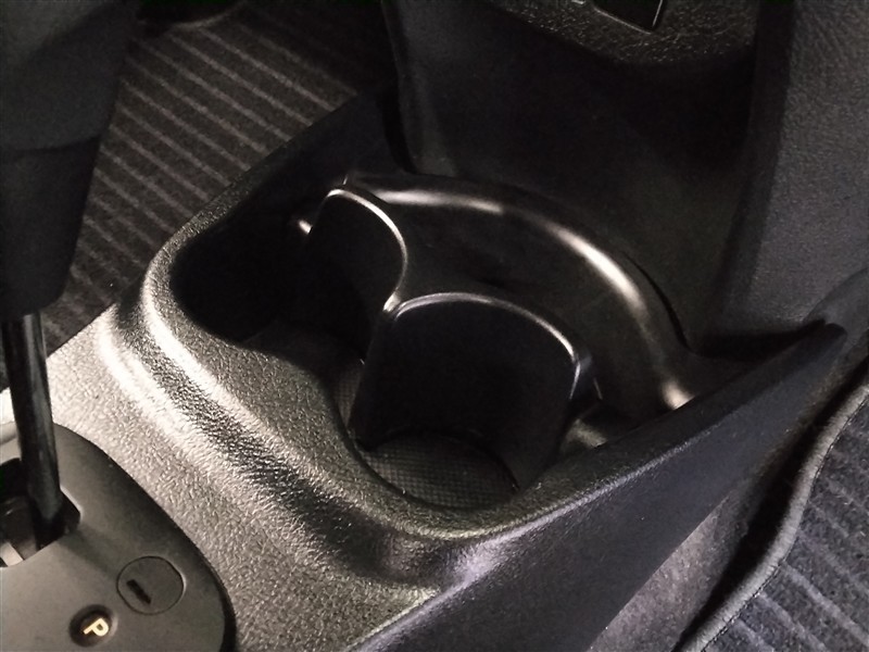 パーキングブレーキ部のセンターコンソールは、CDや小物類の置き場に便利です。後席乗員のためのカップホルダーも用意されています。