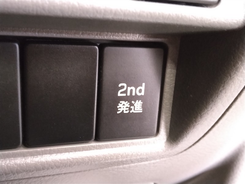 発進モード切り替えスイッチ。2速発進モードは、空荷や軽積載での発進時にスムーズで快適な乗り心地を提供します。重積載時や登坂時には通常モード(1速発進)を選ぶことで力強い走行が可能です。